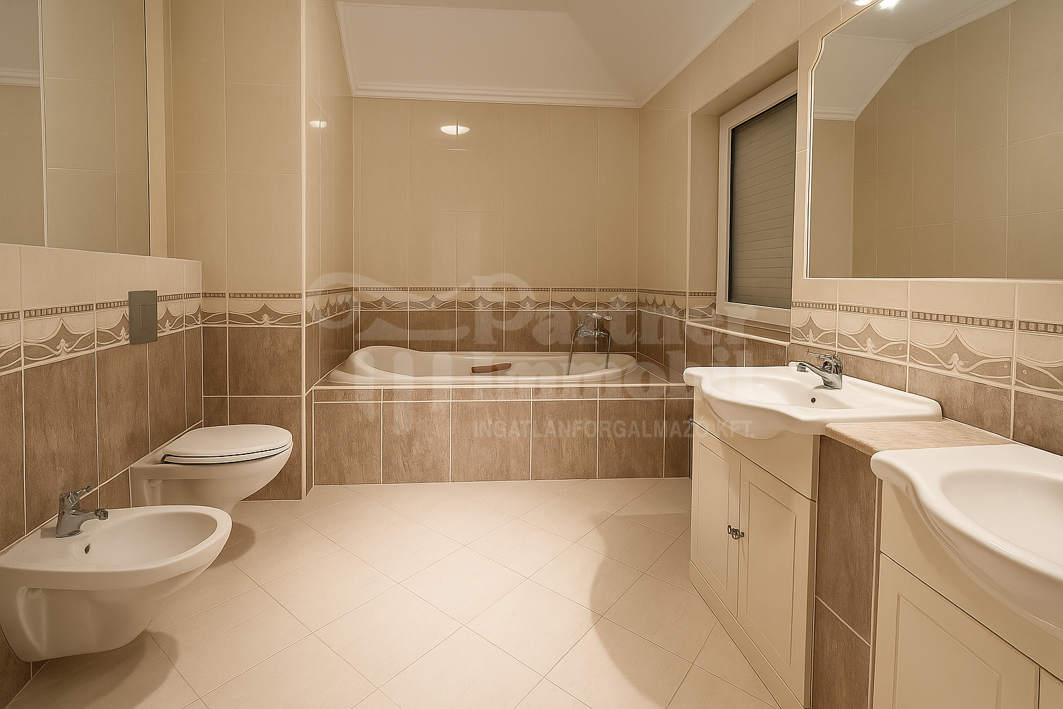 Az emeleten a három hálószoba mellett két fürdőszoba, egy zuhanyzós és egy káddal felszerelt lett kiépítve.