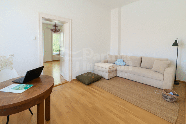 A nappali közel 30m2, világos, két ablakkal, parkettás burkolattal rendelkezik. A konyha szinte új konyhabútorral van felszerelve. A fürdőszoba szintén most lett modern csempével újra burkolva. Saját egyedi gázcirkós radiátoros fűtése van. Külön helyrajziszámon bejegyzett 1/1 tiszta tulajdoni joggal és egyedi közmű mérőórákkal rendelkezik. A lakás szinte azonnal költözhető.